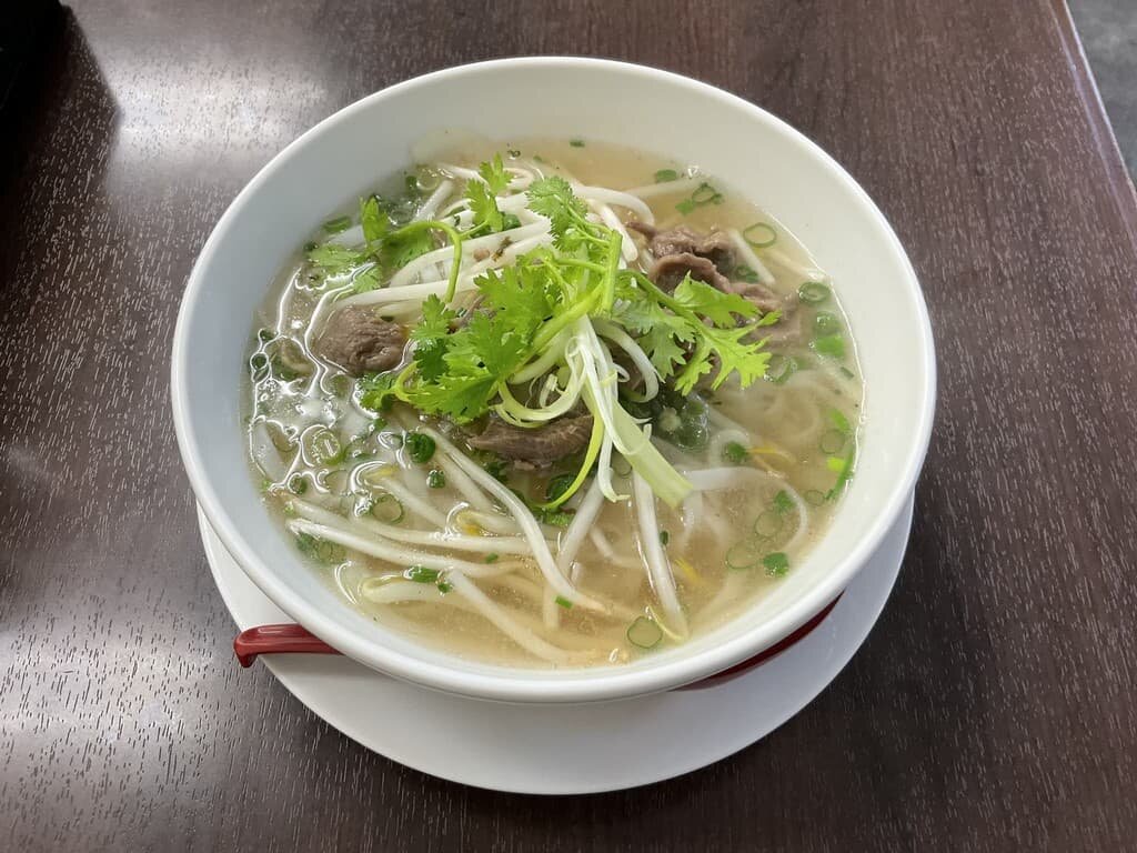 運ばれてきたフォーのスープを一口飲むと、豚骨のような濃厚さとは対極にある、優しい味がしました。体調が万全でなかったこともあり、この穏やかな味わいは心地よく感じます。