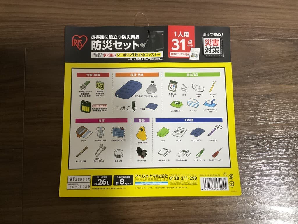 非常食は別途購入し、定期的に消費しながら備蓄する「ローリングストック」を実践しているので、今回はあえて食料品が含まれていない、生活用品中心のセットを選びました。