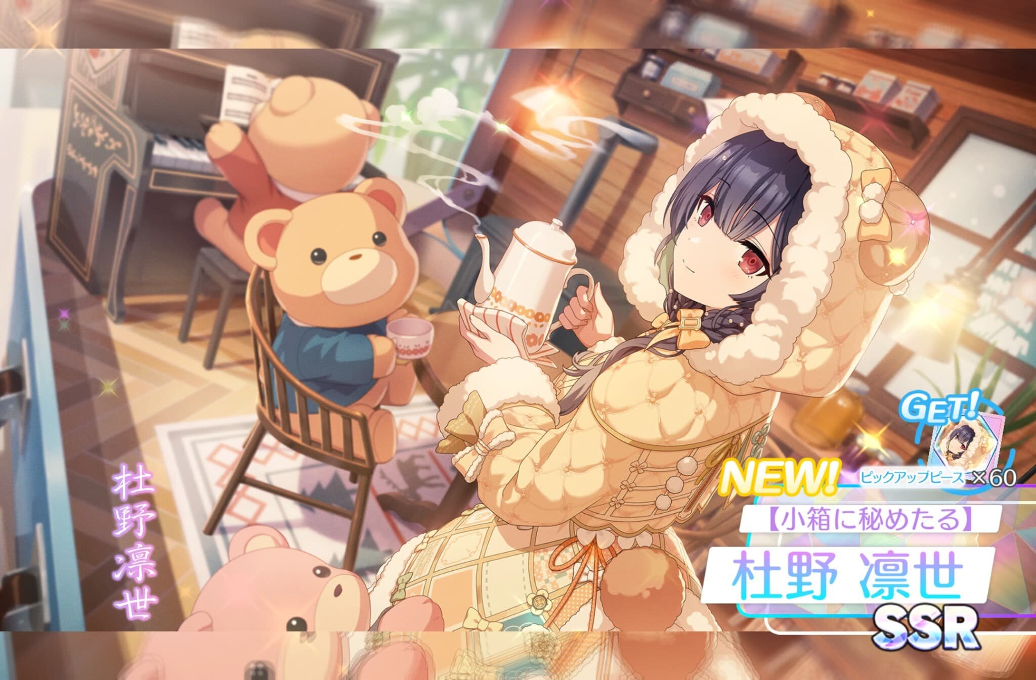 そういえば、息抜きに起動した『シャニソン』で、ピックアップガチャに杜野凛世さんが来ていました。適当に回したところ、あっさりと迎え入れることができました