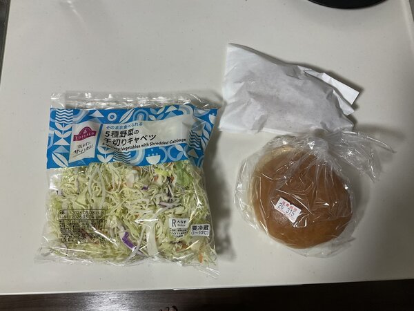 翌日、スーパーで買っておいたカット野菜のキャベツを用意し、調理を開始しました。