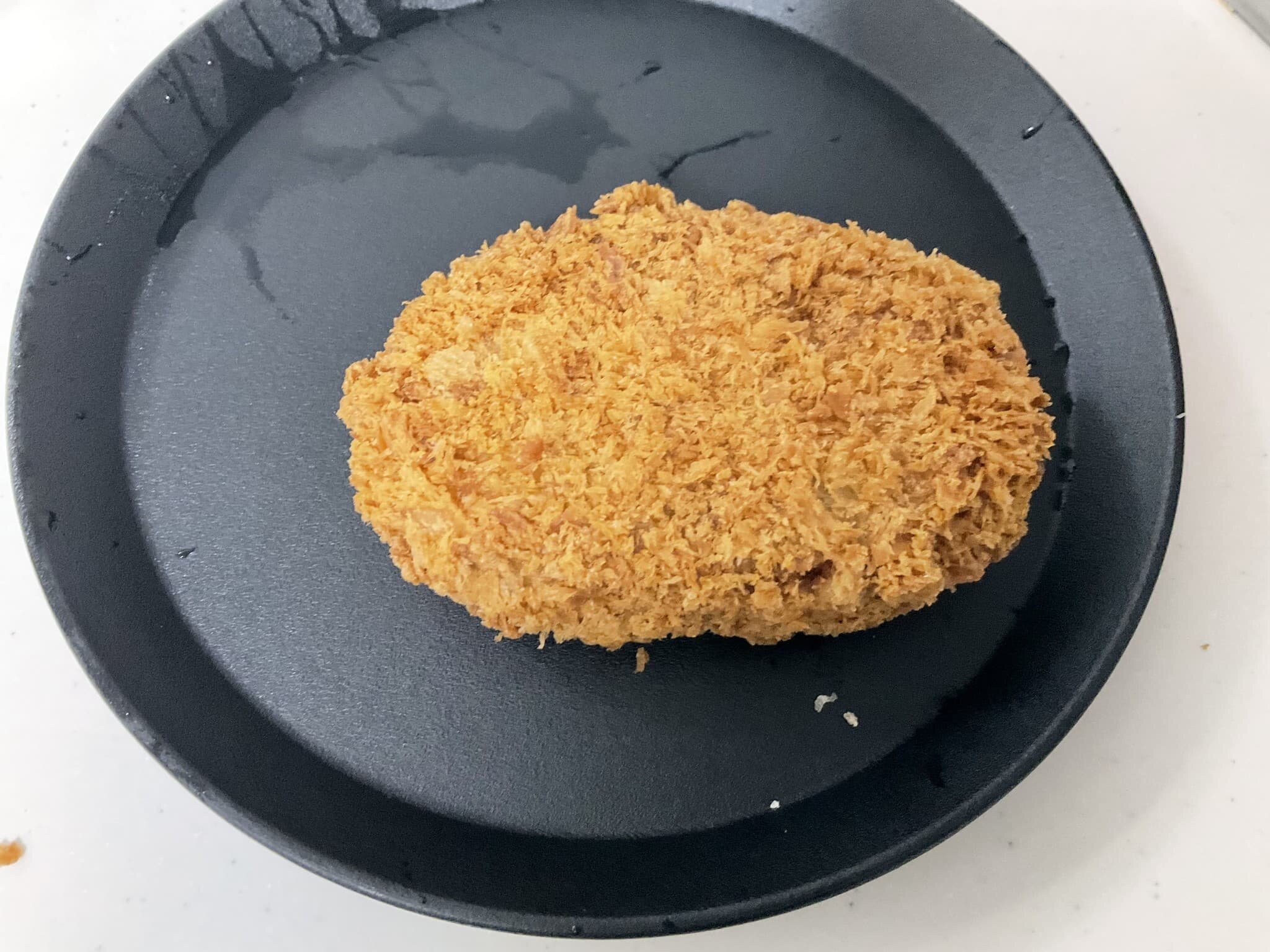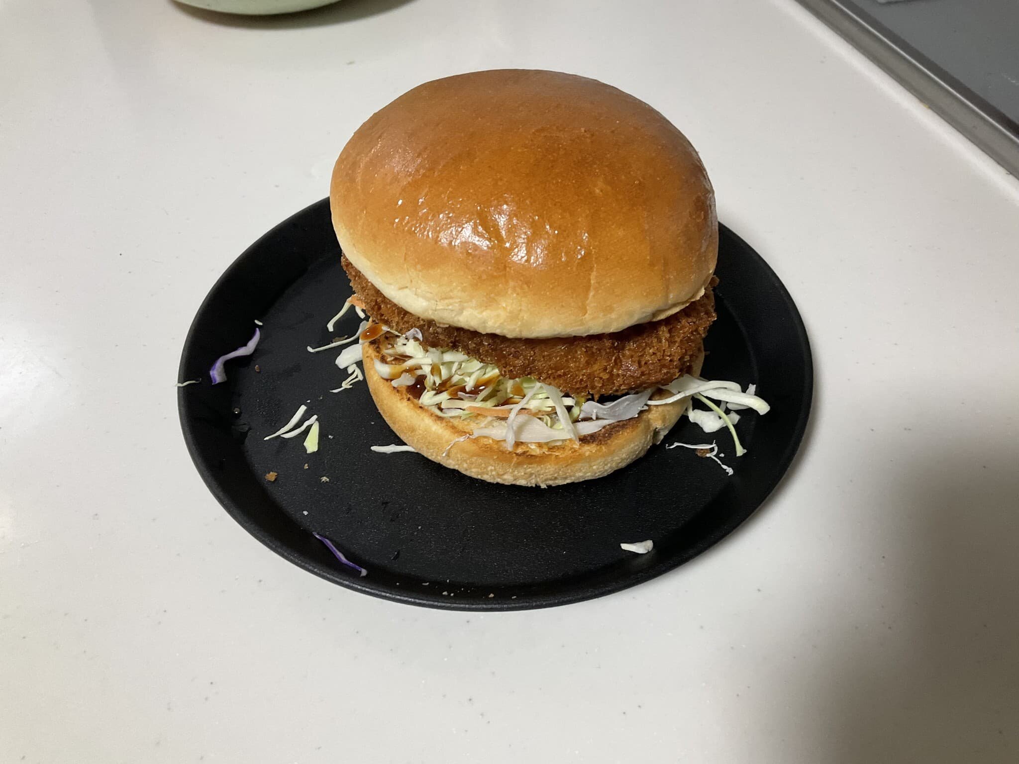 その上に昨日の主役、海軍カレーコロッケを鎮座させれば、手抜きながらも充足感のあるハンバーガーの完成です。