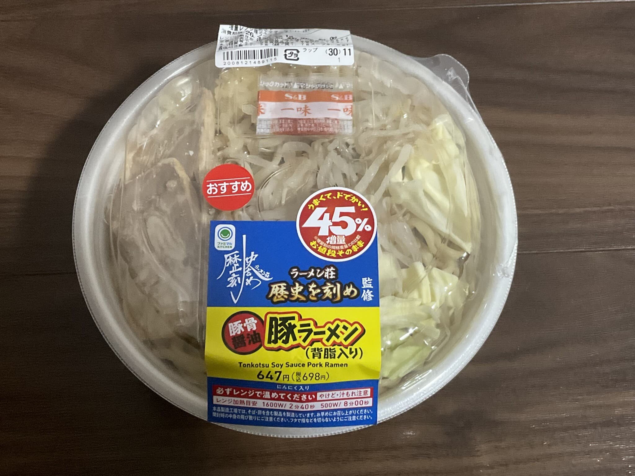これはいわゆる二郎系というものでしょうか。実店舗には過去に数回行ったことがあります。ただ、ここ数年はその手の店に足を運んだ記憶がありません。以前、誰かに誘われたときも、並んでまで食べたいとは思えず断ってしまいました。コンビニと店とでは別物だろうとは思いますが、自分にはこれで十分です。