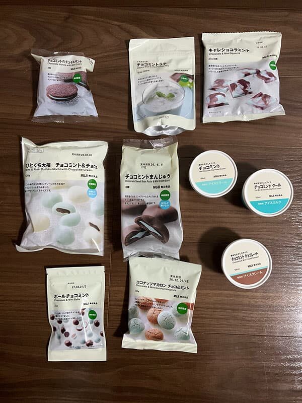 今回もそうでした。ネットで無印良品がチョコミント商品を販売するとの情報を得たので、来店し、とりあえず目についたものを手当たり次第に買い込みました。アイス、チョコレート、クッキー......緑と茶色のパッケージが買い物袋の中で存在感を主張しています。