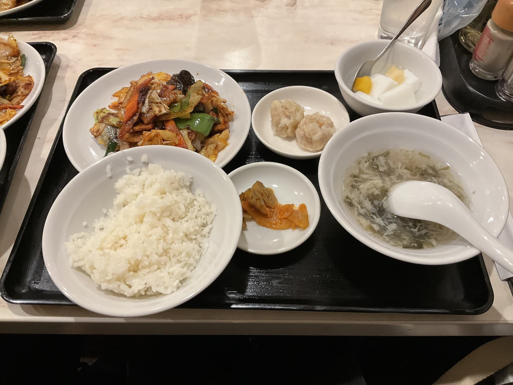 メインの回鍋肉に白飯、スープ、小皿の焼売、ザーサイ、デザートの杏仁豆腐がついていました。中華街というと観光地価格のイメージがありましたが、思ったより手頃でした。味も普通においしかったです。混雑した店内で慌ただしく食べるよりも、空いている店で自分のペースで食事ができたことのほうが、私にとっては大事でした。